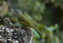 黄绿鹎,小型鸟类,体长19-22厘米。额至头顶暗褐具灰色羽缘,眼先黑色,其上面有一粗著的白纹从鼻后至眼,在黑色的头部极为醒目。上体橄榄绿褐色。颏、喉淡灰色或灰白色,胸灰褐色具橄榄黄色羽缘,…全部>>