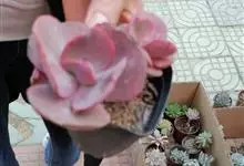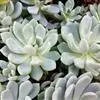 紫珍珠是景天科石莲花属的多年生肉质草本植物。植株中小型;叶片肉质,匙形,呈莲座状紧密排列;叶片粉紫色,叶缘呈粉白色,光照充足时颜色亮丽,不足时叶色会呈现深绿色或灰绿色,叶面光滑,被轻微白粉,…全部>>