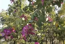 羊蹄甲,别名紫花羊蹄甲、玲甲花,是豆科羊蹄甲属的一种常绿乔木或灌木。树冠开展,枝桠低垂;树皮灰色至暗褐色,近光滑。枝幼时微被灰色短柔毛,后毛脱落;叶硬纸质,近圆形,基部浅心形,…全部>>