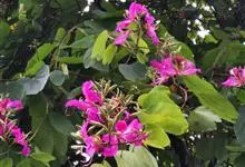 羊蹄甲,别名紫花羊蹄甲、玲甲花,是豆科羊蹄甲属的一种常绿乔木或灌木。树冠开展,枝桠低垂;树皮灰色至暗褐色,近光滑。枝幼时微被灰色短柔毛,后毛脱落;叶硬纸质,近圆形,基部浅心形,…全部>>