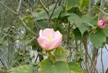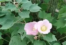木芙蓉,锦葵科木槿属落叶灌木或小乔木。小枝上有细绒毛;叶片为卵状心形,托叶为披针形,常早落;花单生,花萼为钟形,花冠初为白色或淡红色,后逐渐变为深红色;果实为扁球形,有淡黄色的毛附着。花期8到10月。…全部>>