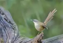 黑喉山鹪莺:体长16厘米,是一种长尾的褐色鹪莺。具明显的白色眉纹及形长的尾。特征为胸具黑色纵纹。上体褐色,两胁黄褐,腹部皮黄;脸颊灰,具明显的白色眉纹及形长的尾。无下髭纹,下体少黑色。虹膜浅褐色,…全部>>