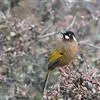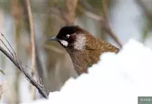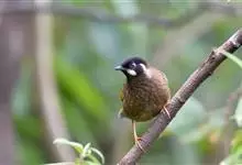 黑顶噪鹛:中型鸟类,体长24-26厘米。前额、脸、颏、喉黑色,头顶黑褐沾棕或深棕橄榄褐色,背栗褐或棕褐色,颧斑白色或棕红色,眼后缘和颈侧亦具白斑,飞羽金黄橄榄色而具蓝灰色尖端。下体淡棕褐色。…全部>>