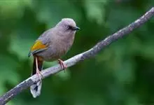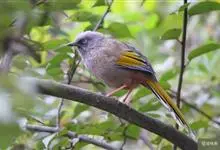 橙翅噪鹛:是噪鹛科、彩翼噪鹛属的中型鸟类,体长22-25厘米。头顶深葡萄灰色或沙褐色。上体灰橄榄褐色,外侧飞羽外翈蓝灰色、基部橙黄色,中央尾羽灰褐色,外侧尾羽外翈绿色而缘以橙黄色并具白色端斑。…全部>>