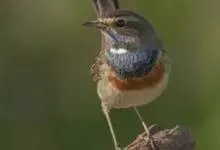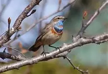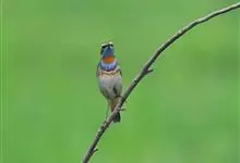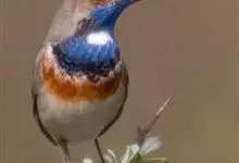 蓝点颏亦称“蓝喉歌鸲”,通称蓝靛颏儿。身体大小和麻雀相似,体长12-13厘米,体重17-18克。头部、上体主要为土褐色。眉纹白色。尾羽黑褐色,基部栗红色。颏部、喉部辉蓝色,下面有黑色横纹。下体白色。…全部>>