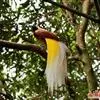 大极乐鸟是极乐鸟属中最大的鸟种。成年雄鸟体长可达到43厘米,雌性可达35厘米。雄鸟的额、颊、喉等墨绿色;头、颈黄色;上体暗赤栗色;腹部葡萄红色,胁部有长饰羽,其基部橙黄,中部黄色,…全部>>