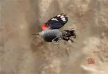 红翅旋壁雀:体重15-23克,体长120-178毫米。是一种体型略小的鸟类。尾短而嘴长,翼具醒目的绯红色斑纹。飞羽黑色,外侧尾羽羽端白色显著,初级飞羽两排白色点斑飞行时成带状。繁殖期雄鸟脸及喉黑色,…全部>>