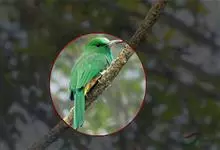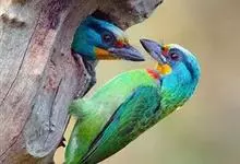 绿拟啄木鸟为鴷形目,须科,拟啄木属的一种。形较大拟啄木鸟略小,体长约260mm。头、颈及胸浅褐而具淡黄白色条纹;喉几为淡黄白色;身体余部草绿色。虹膜棕褐色,眼周裸露部黄色;嘴峰角黄色;跗跖和趾角黄…全部>>