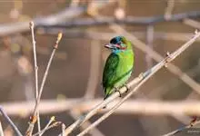 金喉拟啄木鸟,是须鴷科、拟啄木鸟属的鸟类。金喉拟啄木鸟为小型鸟类,体长19-24厘米。额深红色,头顶金黄色,后枕具一大块深红色斑,耳羽和头侧银灰色,上体草绿色,颏和上喉金黄色,下喉淡银灰色,…全部>>