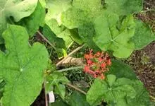 佛肚树是大戟科麻风树属的直立灌木。株高可达1.5米;茎基部或下部通常膨大呈瓶状;枝条粗短,具散生突起皮孔;叶盾状着生,近圆形或宽椭圆形,先端圆钝,基部平截或钝圆,托叶分裂呈刺状,宿存;花序顶生,…全部>>
