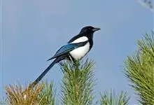 喜鹊:是鸦科、鹊属的一种鸟类。共有11个亚种。体长40-50厘米,雌雄羽色相似,头、颈、背至尾均为黑色,并自前往后分别呈现紫色、绿蓝色、绿色等光泽,双翅黑色而在翼肩有一大形白斑,尾远较翅长,呈楔形,…全部>>