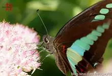 青带凤蝶Graphium sarpedon ,又名青凤蝶,是最普遍的中型凤蝶,飞行速度很快。青带凤蝶的翅膀中央有许多浅蓝色的斑点,很整齐地排列成一条直线。这些斑点由上而下逐渐变大,就像一条青色的带子。全部>>