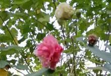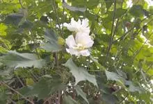 木芙蓉,锦葵科木槿属落叶灌木或小乔木。小枝上有细绒毛;叶片为卵状心形,托叶为披针形,常早落;花单生,花萼为钟形,花冠初为白色或淡红色,后逐渐变为深红色;果实为扁球形,有淡黄色的毛附着。花期8到10月。…全部>>