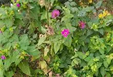 即紫茉莉,英文名:Four-o'clock,Marvel of Peru,为紫茉莉科、紫茉莉属多年生草本植物,一年生栽培。株高50~80cm。根粗壮,茎多分枝而散生。叶对生,卵形或心脏形。花数朵簇生…全部>>