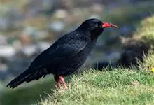 红嘴山鸦,是脊索动物门鸟纲雀形目鸦科鸟类。红嘴山鸦的成鸟通体羽毛纯黑色具有蓝色金属光泽,翼和尾泛有蓝绿色金属光泽;虹膜暗褐色,喙较为尖细,并且呈镰状下弯,喙和脚朱红色。…全部>>