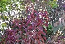 紫锦木是大戟科、大戟属的常绿乔木。叶圆卵形,主脉于两面明显,侧脉数对,边缘全缘,两面红色;花序生于二歧分枝的顶端,总苞阔钟状,裂片呈三角形,边缘具毛,腺体深绿色呈半圆形,…全部>>