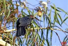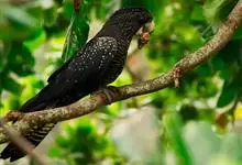 噪鹃是鹃形目杜鹃科噪鹃属鸟类,又名栽秧雀、哥好雀。雄鸟通体乌黑泛幽蓝色金属光泽,下体泛蓝绿色;虹膜血红色,啄淡土黄色,基部较暗,脚蓝灰色。雌鸟上体、翼和尾为深褐色,…全部>>