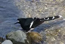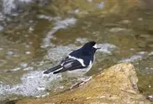 白额燕尾是雀形目鸫科燕尾属鸟类,又叫水鸦雀、白冠燕尾、黑背燕尾。前额至头顶具白斑,头余部、颈、背、喉及胸黑色,腰、腹部及尾下覆羽白色,两翼黑色且具白色翼斑;尾上覆羽黑色并具白色端斑,中央尾羽最短,…全部>>