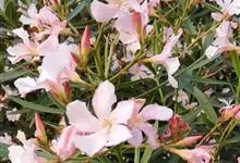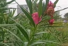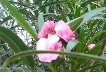 夹竹桃,又名红花夹竹桃、欧洲夹竹桃,是夹竹桃科夹竹桃属的一种常绿直立大灌木,枝条灰绿色,含水液。叶披针形,3叶轮生。聚伞花序顶生,花冠粉红至深红色,花冠漏斗状,有特殊香味。蓇葖果,圆柱形。种子长圆形,…全部>>