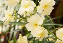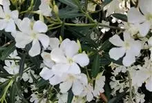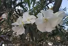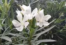 白花夹竹桃是夹竹桃科、夹竹桃属植物夹竹桃的栽培品种。常绿直立大灌木,枝条灰绿色;嫩枝条具稜,被微毛,老时毛脱落。叶3-4枚轮生,下枝为对生,叶面深绿,叶背浅绿色;侧脉纤细平行与中脉成直角;叶柄扁平,…全部>>