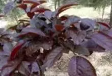紫叶李是蔷薇科李属樱桃李的一个品种,别名红叶李、真红叶李等,落叶灌木或小乔木。其多分枝,枝条细长,暗灰色,小枝暗红色,无毛;冬芽卵圆形,紫红色;叶片椭圆形、卵形或倒卵形,极稀椭圆状披针形,…全部>>