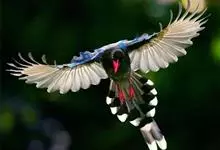 红嘴蓝鹊,别名山鹊、长尾鹊,是鸦科蓝鹊属的一种观赏性较强的大型鸣禽。该物种为体长54~65cm,头、颈、喉和胸黑色,头顶至后颈有一块白色至淡蓝白色或紫灰色块斑,其余上体紫蓝灰色或淡蓝灰褐色。尾长呈凸状,…全部>>