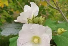 木芙蓉,锦葵科木槿属落叶灌木或小乔木。小枝上有细绒毛;叶片为卵状心形,托叶为披针形,常早落;花单生,花萼为钟形,花冠初为白色或淡红色,后逐渐变为深红色;果实为扁球形,有淡黄色的毛附着。花期8到10月。…全部>>