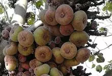 大果榕是桑科榕属的小乔木,株高可达10米;幼枝被柔毛;叶互生,宽卵状心形或近圆形;雄花无梗、匙形、花丝长,雌花生于雌株榕果内,子房白色;榕果簇生于树干基部或老茎短枝上、扁球形或陀螺形,…全部>>