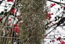 松萝凤梨,凤梨科,铁兰属,本种耐寒力极强,弗吉尼亚自然生长的成年植株可以忍受零下17度短期低温。北纬35度以南的秦岭淮河流域东部低地,利用北美落羽杉造林后,可引种弗吉尼亚种源成年松萝凤梨,让其攀爬在…全部>>