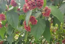 赪桐 Sweet)是唇形科、大青属灌木,高1-4米,叶片圆心形,顶端尖或渐尖,基部心形,边缘有疏短尖齿,表面疏生伏毛,二歧聚伞花序组成顶生,大而开展的圆锥花序,花序的最后侧枝呈总状花序,花萼红色,…全部>>