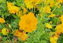 黄秋英是菊科秋英属的一年生草本植物。枝叶为对生的二回羽状复叶,裂片呈披针形;花为舌状花,有单瓣和重瓣两种,颜色多为黄、金黄、橙色,红色;瘦果棕褐色,粗糙有毛,顶端有细长喙;春播花期6-8月,…全部>>