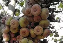 大果榕是桑科榕属的小乔木,株高可达10米;幼枝被柔毛;叶互生,宽卵状心形或近圆形;雄花无梗、匙形、花丝长,雌花生于雌株榕果内,子房白色;榕果簇生于树干基部或老茎短枝上、扁球形或陀螺形,…全部>>