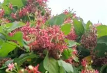 使君子 Jongkind)是使君子科、使君子属攀援灌木,叶对生,椭圆形,两面均被灰白色柔毛。穗状花序,倒挂下垂。花期夏秋。果有五棱,熟时黑色,种子白色。分布于印度、缅甸、菲律宾和中国。喜温润,深根性,…全部>>