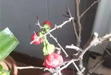 贴梗海棠 Nakai)是蔷薇科、木瓜海棠属植物。落叶灌木,高达2米,枝条直立开展,有刺。叶片卵形至椭圆形,稀长椭圆形,长3-9厘米,宽1.5-5厘米。花先叶开放,3-5朵簇生于二年生老枝上。…全部>>