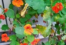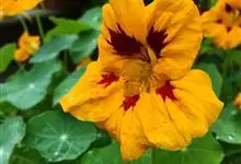 旱金莲是旱金莲科旱金莲属蔓生一年生草本植物。叶互生,叶柄向上扭曲,盾状,叶圆形,具波状浅缺刻,下面疏被毛或有乳点;花黄、紫、桔红或杂色,花托杯状,花瓣为圆形,边缘具缺刻;果实为扁球形;花果期6-10月,…全部>>