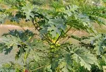 番木瓜,番木瓜科番木瓜属的常绿软木质小乔木,高达10米,具有乳汁;茎不分枝或有时于损伤处分枝;叶大且聚生于茎顶,近似盾形,叶柄中空;花单性或两性,有些品种雄株偶尔生两性花或雌花,…全部>>