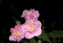 木芙蓉,锦葵科木槿属落叶灌木或小乔木。小枝上有细绒毛;叶片为卵状心形,托叶为披针形,常早落;花单生,花萼为钟形,花冠初为白色或淡红色,后逐渐变为深红色;果实为扁球形,有淡黄色的毛附着。花期8到10月。…全部>>