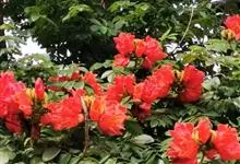 火焰木,又名苞萼木、喷泉树,为紫葳科常绿大乔木,株高10—20米,叶为奇数羽状复叶,对生,较大,斜椭圆形,全缘,纸质,叶面深绿色。 全部>>