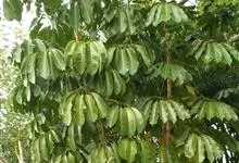 昆士兰伞木,吕松鹅掌柴 ,称昆石兰遮树,澳洲鸭脚木、方式叶鹅掌柴、伞树、大叶伞。叶片阔大,柔软下垂,形似伞状,株形优雅轻盈,易于管理,适于客厅的墙隅与沙发旁边置放,是室内理想的观叶植物。但目前多由…全部>>