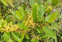 禾串树是叶下珠科土蜜树属小乔木,高达7米;枝条圆柱形;,小枝、叶柄、托叶、花序轴被黄色绒毛,其余均被长柔毛或柔毛。叶片长圆形、椭圆形或倒卵形,长7-25厘米,宽3-10.5厘米,顶端短渐尖或尾状渐尖,…全部>>
