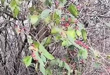 珊瑚樱是茄科茄属植物。株高达2米;植株无毛;叶窄长圆形或披针形,长1-6厘米,基部窄楔形下延,全缘或波状,侧脉4-7对;叶柄长2-5毫米;花单生,稀双生或成短总状花序与叶对生或腋外生,…全部>>