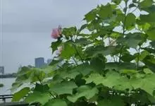 木芙蓉,锦葵科木槿属落叶灌木或小乔木。小枝上有细绒毛;叶片为卵状心形,托叶为披针形,常早落;花单生,花萼为钟形,花冠初为白色或淡红色,后逐渐变为深红色;果实为扁球形,有淡黄色的毛附着。花期8到10月。…全部>>