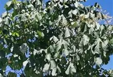 白花泡桐 Hemsl.)别名大果泡桐、通心条、饭桐子、泡桐等,为泡桐科泡桐属的乔木。其树冠圆锥形,树皮灰褐色,幼枝被黄褐色星状绒毛;叶片长卵状心脏形,有时为卵状心脏形,新枝上的叶下有星毛及腺,…全部>>