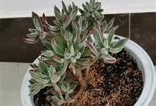 锦晃星是景天科、石莲花属多肉植物。多年生小灌木状多浆植物,灰绿色卵状倒披针形肥厚肉质叶轮状互生,全缘,椭圆尖头,长3-4厘米,宽2-2.5厘米,厚约1厘米,玲凉季节阳光下,叶端及上缘呈红色。…全部>>