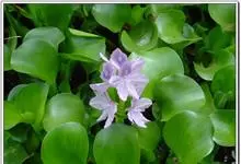 凤眼莲 Solms),是雨久花科凤眼莲属的浮水草本植物。凤眼莲茎极短,具长匍匐枝;叶基生,莲座状排列,宽卵形或宽菱形,先端钝圆或微尖,基部宽楔形或幼时浅心形;花葶具棱,穗状花序;花冠近两侧对称,…全部>>