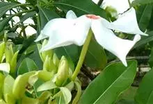 海杧果是夹竹桃科海杧果属的乔木。高4~8米;树皮为灰褐色;全株有丰富乳汁;叶厚纸质,呈倒卵状长圆形或倒卵状披针形,叶面为深绿色,叶背为浅绿色;花为白色,有芳香;核果双生或单个,呈阔卵形或球形,…全部>>