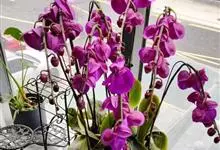蝴蝶兰又名蝶兰,素有“兰花皇后”的美称。兰科蝴蝶兰属多年生草本植物,茎很短,常被叶鞘所包;叶片稍肉质,上面是绿色,而背面是紫色,呈椭圆形或长圆形,且先端锐尖或钝,具有短而宽的鞘;花色为白色,…全部>>