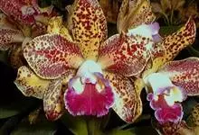 湿唇兰 Pfitz.):茎粗壮,长被宿存的叶鞘所包,上部具3-5枚叶。叶长圆形或倒卵状长圆形。花序1-6个,长达35厘米;疏生5-8朵花;花大,稍肉质,萼片和花瓣黄色带暗紫色斑点;萼片近相似,…全部>>