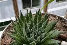 条纹十二卷 Haw.)是芦荟科十二卷属植物,为多年生肉质草本植物。植株高度10-15厘米,其呈莲座状生长;叶片紧密轮生在茎轴上,柔软多汁,呈长三角状披针形,极肥厚;叶面光滑、扁平,色深绿;叶背突起,…全部>>