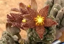 豹皮花 L. C. Leach)是夹竹桃科、豹皮花属植物。肉质植物,茎亮绿色,几株簇生在一起,高约10厘米,状似仙人掌,四棱,棱稍钝,棱具粗厚软刺,光滑,绿色。无叶。…全部>>